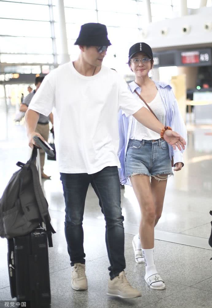 2019年8月19日,長沙,嚴屹寬、杜若溪夫婦現(xiàn)身機場。辦完登機手續(xù)后嚴屹寬主動拎過所有行李,妥妥的模范老公,而美美的杜若溪素顏亮相,大玩下衣失蹤秀美腿,襪子上的“相當暴躁”有點意思!