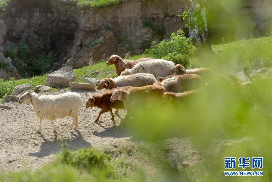 6月6日,轉場羊群行走在牧道上。新華社記者 丁磊 攝