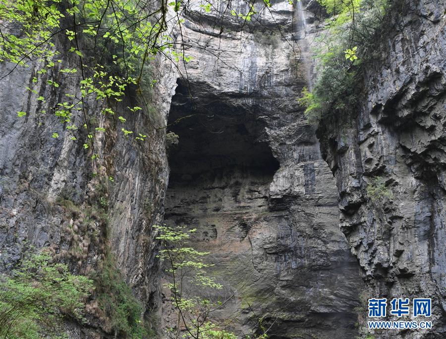 地洞河天坑的巖壁。位于陜西省漢中市寧強(qiáng)縣的地洞河天坑,是禪家?guī)r天坑群中規(guī)模最大的一處天坑,坑內(nèi)分布有石鐘乳、石筍,具有極高的地質(zhì)研究?jī)r(jià)值。新華社 張博文 攝