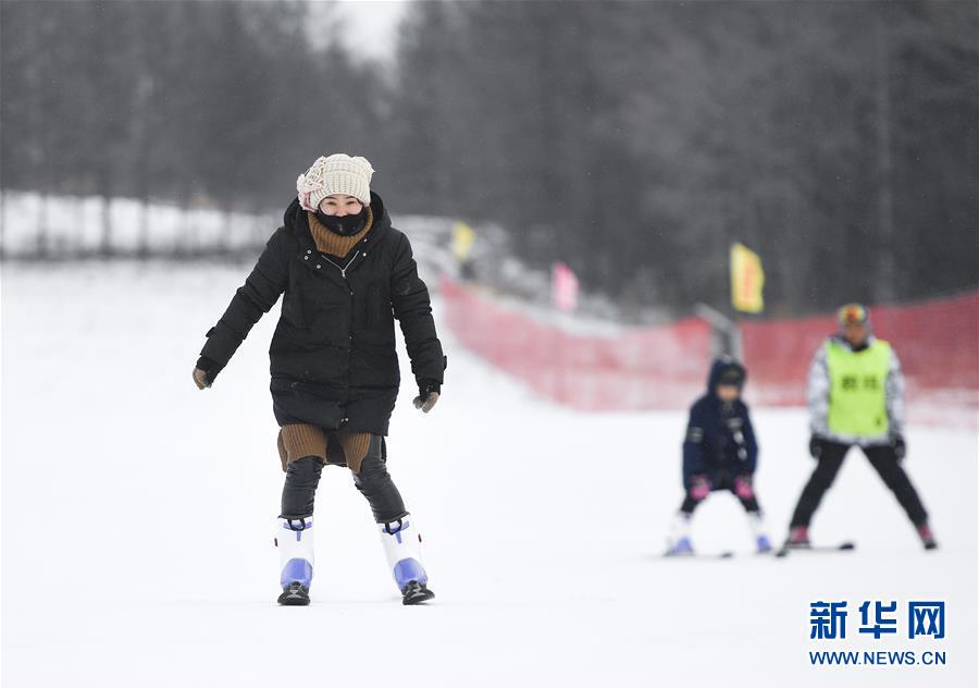 游客在二合雪鄉(xiāng)滑雪場(chǎng)內(nèi)體驗(yàn)滑雪(1月25日攝)。新華社記者許暢攝