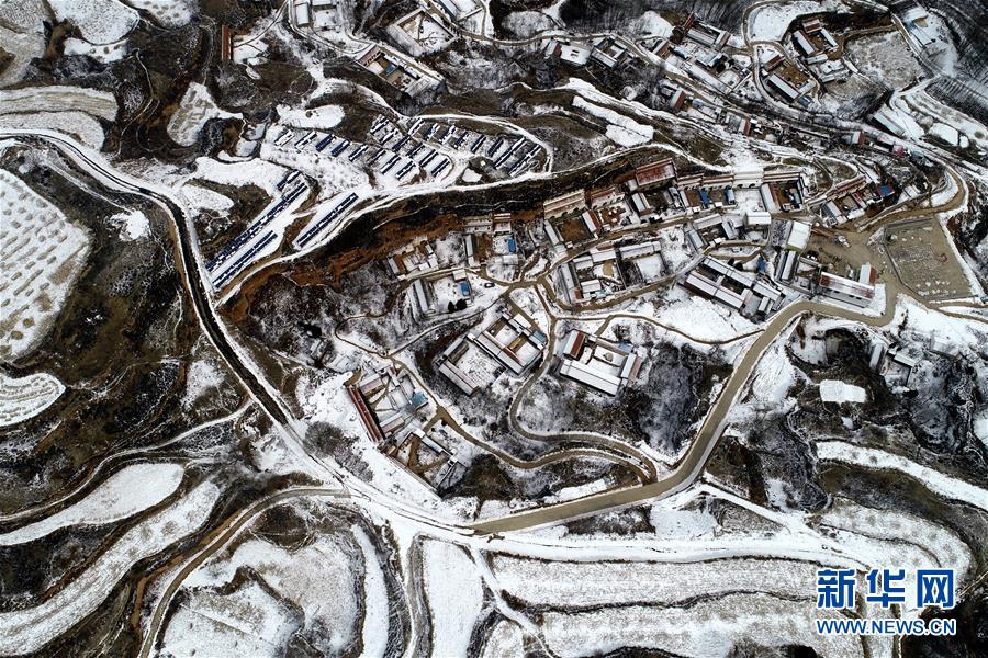 山西省武鄉(xiāng)縣大有鄉(xiāng)王莊溝村雪景(2月15日無人機拍攝)。