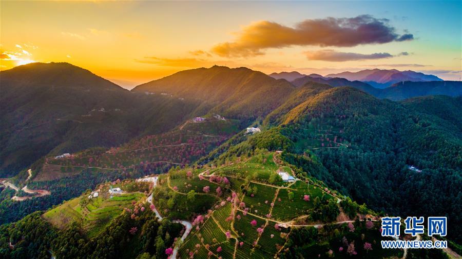 這是夕陽(yáng)時(shí)分的云南南澗彝族自治縣無(wú)量山櫻花谷一景(2017年12月16日無(wú)人機(jī)拍攝)。 新華社記者胡超攝
