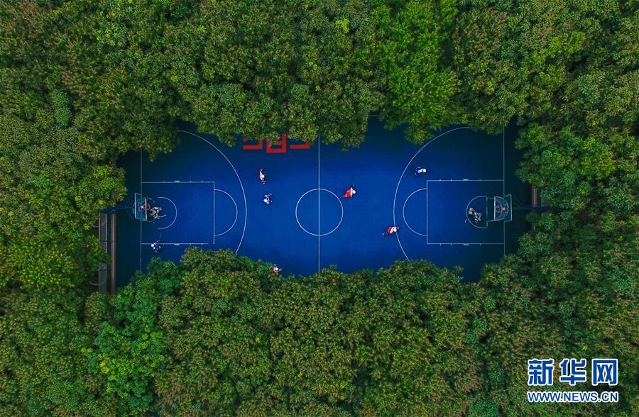這是被綠蔭環(huán)繞的廣州第四十一中學(xué)運(yùn)動(dòng)場(chǎng)(2017年3月16日無(wú)人機(jī)拍攝)。 新華社記者 劉大偉 攝