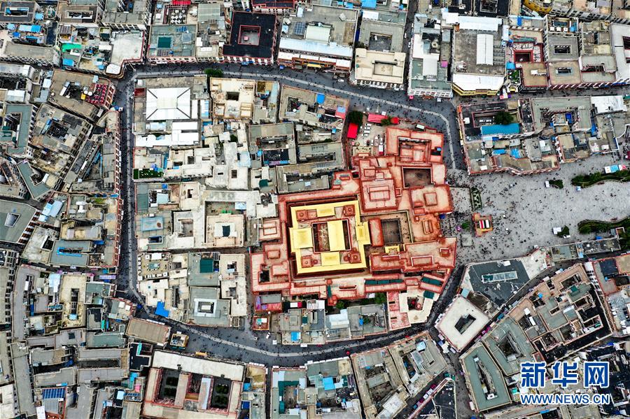 8月10日無人機(jī)拍攝的大昭寺。新華社記者 普布扎西 攝