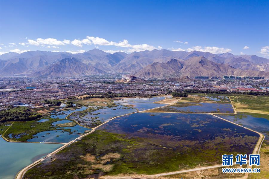 鳥瞰拉薩拉魯濕地(6月5日無人機(jī)拍攝)。新華社記者 普布扎西 攝