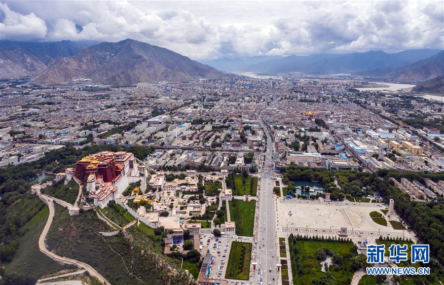 鳥瞰拉薩古城(8月10日無人機(jī)拍攝)。新華社記者 李鑫 攝