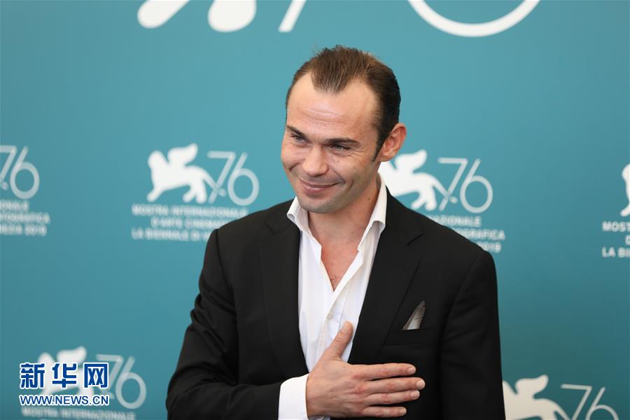 9月5日,在意大利威尼斯,演員魯濱遜·斯泰弗南出席電影《世界的勝利》拍照式。 新華社記者 程婷婷 攝