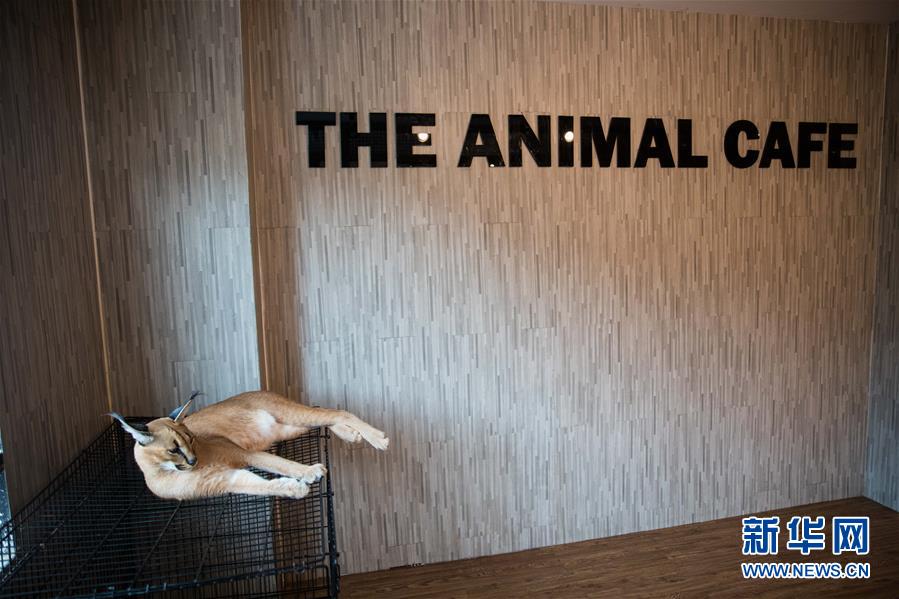9月9日,一只獰貓?jiān)诼葎?dòng)物咖啡館休息。新華社記者 張可任 攝