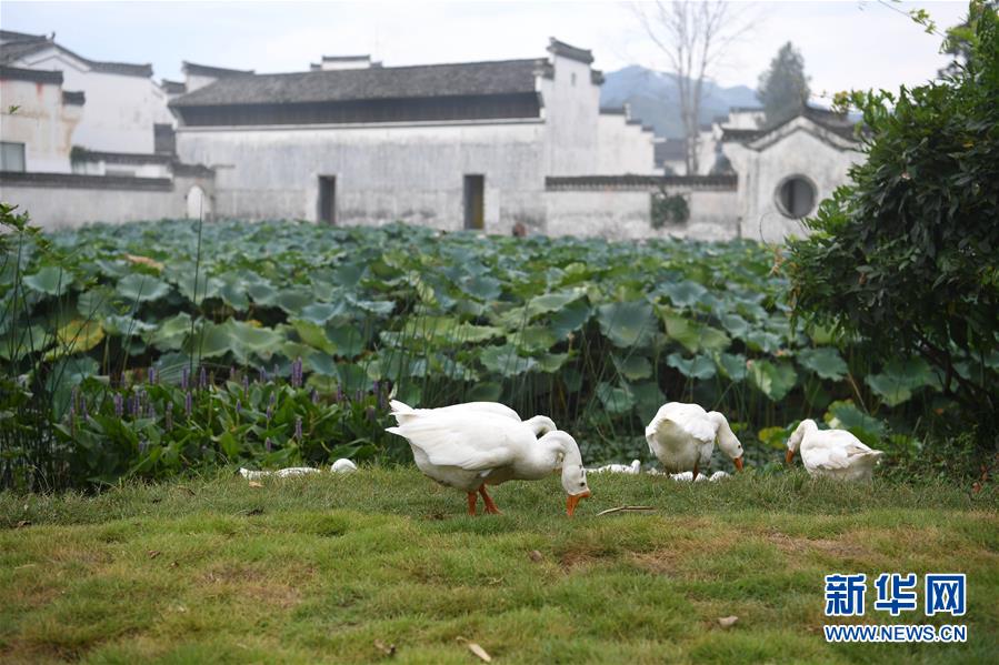 這是呈坎村內的荷塘和古民居(8月28日攝)。新華社記者劉軍喜攝