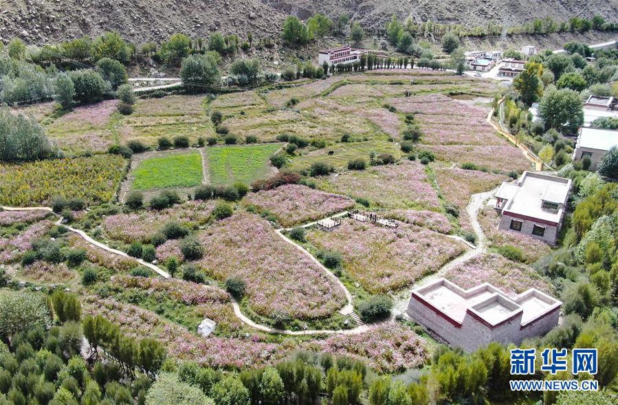 9月13日無人機拍攝的尼木縣山谷間盛開的波斯菊。 時值中秋,西藏拉薩市尼木縣的山谷間,大片波斯菊爭相盛開,宛如花的海洋。 新華社記者 晉美多吉 攝
