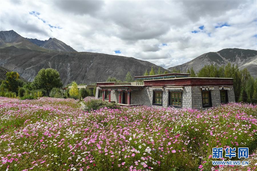 9月13日拍攝的尼木縣山谷間盛開的波斯菊。 新華社記者 晉美多吉 攝
