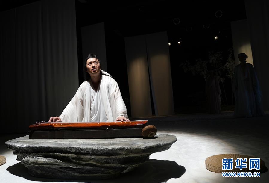 9月16日,演員在話劇《廣陵絕》中表演。 當(dāng)日,話劇《廣陵絕》在北京人藝實(shí)驗(yàn)劇場上演。該劇由中國戲劇家協(xié)會副主席王曉鷹任藝術(shù)指導(dǎo),龐貝編劇,通過魏晉名士嵇康與戰(zhàn)國刺客聶政的“同構(gòu)”拼貼,旨在展現(xiàn)中國傳統(tǒng)“道義”精神,反思生命與自由沖突,探討人的主體意識覺醒。 新華社記者 金良快 攝