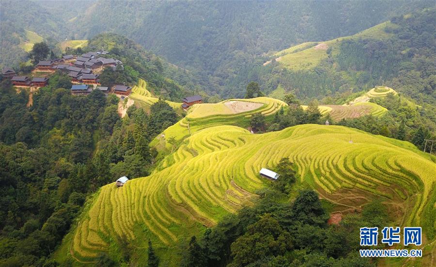 這是9月17日無(wú)人機(jī)拍攝的貴州省榕江縣計(jì)劃鄉(xiāng)計(jì)劃村陽(yáng)開(kāi)苗寨梯田。 新華社記者 楊文斌 攝