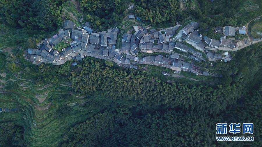 晨曦中的木梨硔村景色(9月18日無(wú)人機(jī)拍攝)。9月18日清晨,地處皖南山區(qū)的安徽省黃山市休寧縣木梨硔村沐浴在晨曦之中,靜謐祥和。新華社記者張端攝
