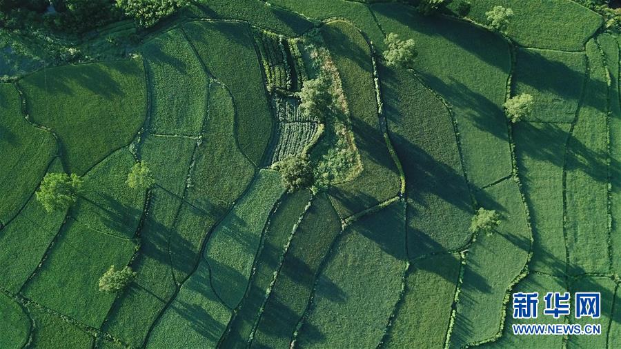 這是8月4日無人機(jī)拍攝的安徽黟縣宏村風(fēng)景區(qū)附近的農(nóng)田。新華社記者張端攝