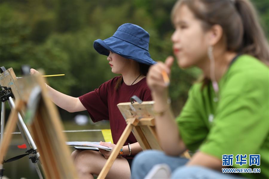 4月24日,繪畫(huà)愛(ài)好者在西遞風(fēng)景區(qū)寫(xiě)生。新華社記者張端攝