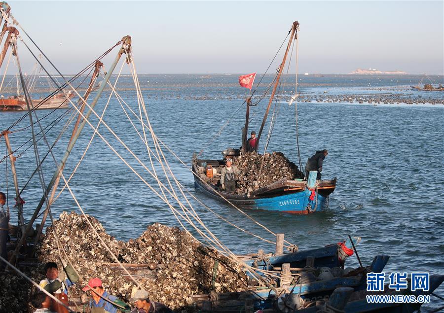 當(dāng)日,在遼寧省大連市長(zhǎng)??h廣鹿島海域,漁民忙碌地打撈牡蠣,呈現(xiàn)一片繁忙的豐收景象。近年來,大連市持續(xù)加強(qiáng)海洋牧場(chǎng)建設(shè),目前已累計(jì)建設(shè)海洋牧場(chǎng)約36萬(wàn)公頃,投放各類魚礁約1578萬(wàn)平方米,建立國(guó)家級(jí)海洋牧場(chǎng)示范區(qū)14處。