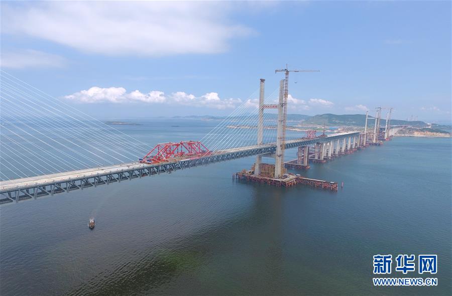 6月5日,福平鐵路平潭海峽公鐵兩用大橋元洪航道橋主橋正式合龍。新華社記者林善傳攝