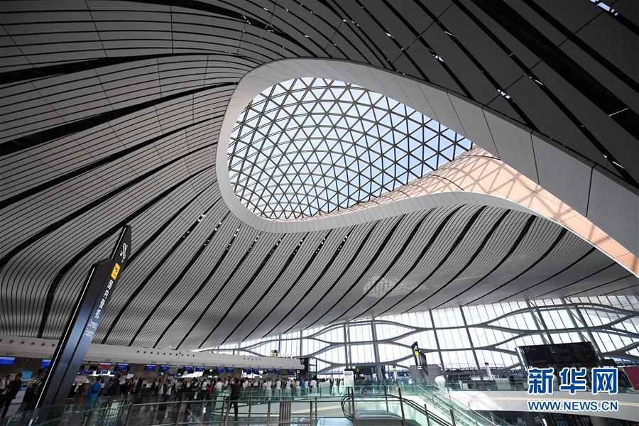 9月25日拍攝的北京大興國(guó)際機(jī)場(chǎng)航站樓內(nèi)部。新華社記者張晨霖?cái)z