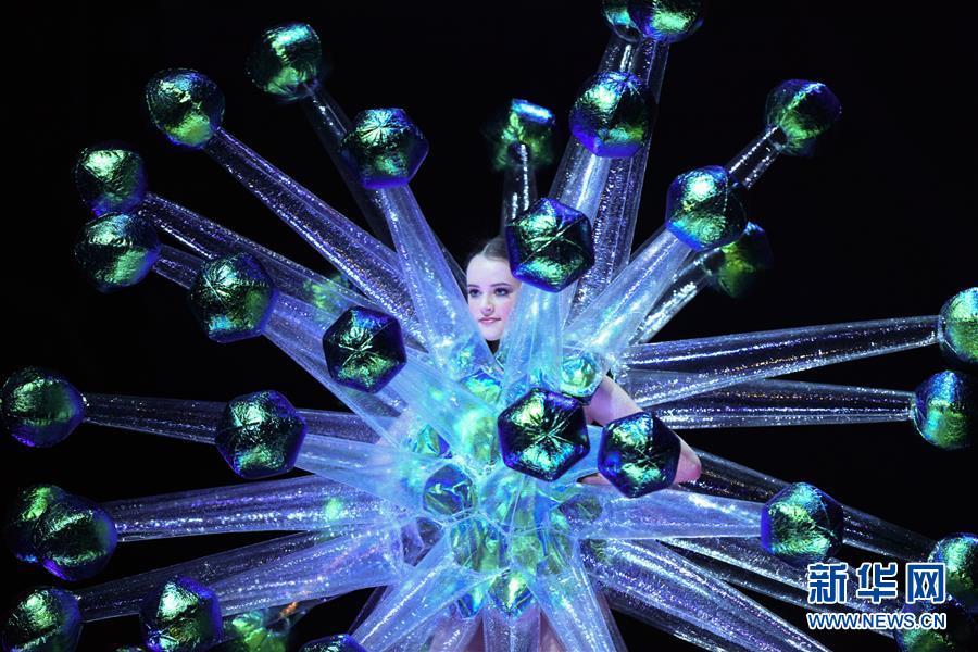 9月26日,在新西蘭首都惠靈頓舉行的世界可穿著藝術(shù)大賽年度秀場(chǎng)表演中,模特展示入圍作品。新華社記者郭磊攝