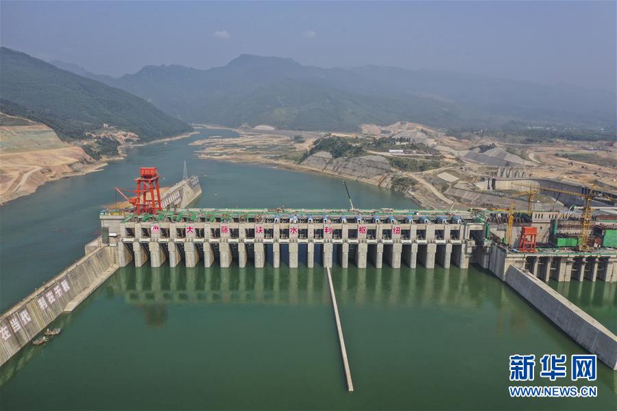 建設(shè)中的大藤峽水利樞紐工程(10月6日無人機拍攝)。新華社記者曹祎銘攝