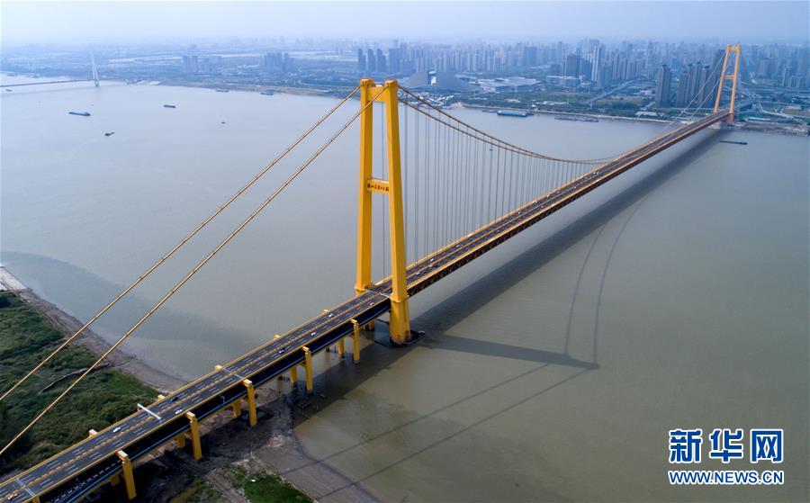 10月8日,武漢楊泗港長江大橋正式通車(無人機(jī)拍攝)。當(dāng)日,長江上首座雙層公路大橋——武漢楊泗港長江大橋正式投入使用。楊泗港長江大橋全長4.13公里,主跨1700米,一跨過長江。大橋上層為城市快速路,雙向6車道,設(shè)計(jì)行車時(shí)速80公里;下層為城市主干道,雙向6車道,設(shè)計(jì)行車時(shí)速60公里。新華社記者熊琦攝