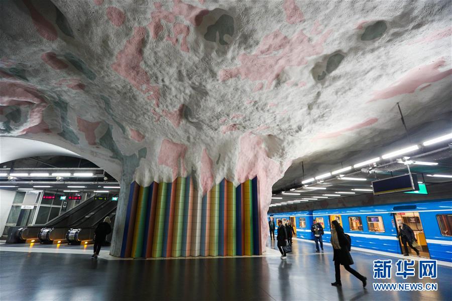 10月9日,在瑞典斯德哥爾摩,乘客在一處地鐵站內(nèi)行走。新華社記者鄭煥松攝