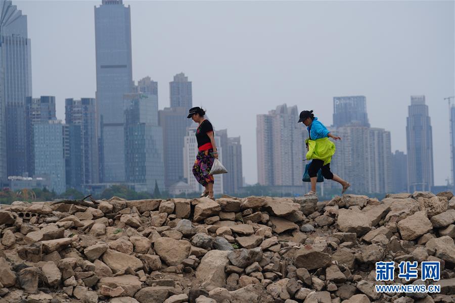 10月14日,兩名女士走在贛江南昌段露出的河堤上。當日16時,江西省氣候中心發(fā)布干旱橙色預警。由于連日少雨,贛江江西南昌段水位降至11.57米,大片沙洲露出水面。據(jù)江西省氣象部門統(tǒng)計,7月下旬到10月初,江西省平均降雨量96毫米,比多年均值偏少約七成。據(jù)介紹,江西省水利部門正在進行科學調(diào)度,積極做好引水防旱抗旱工作,其中南昌、九江、上饒、景德鎮(zhèn)4個設區(qū)市的13個縣(市、區(qū))共引水9717.6萬立方米,保障灌溉面積123萬余畝。 新華社記者 周密 攝