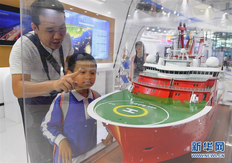 10月15日,觀眾在招商局展臺了解首艘國產(chǎn)極地探險郵輪“格雷格·莫蒂默”號。 當(dāng)日,2019中國海洋經(jīng)濟博覽會在深圳開幕,大批海洋“大國重器”及高新技術(shù)研發(fā)成果亮相。 中國海洋經(jīng)濟博覽會被譽為“中國海洋第一展”。2019中國海洋經(jīng)濟博覽會以“藍色機遇、共創(chuàng)未來”為主題,吸引450余家企業(yè)和機構(gòu)參展,將重點圍繞現(xiàn)代港口建設(shè)、海洋高新技術(shù)與裝備制造、海洋可再生能源利用、海水淡化與綜合利用等熱點領(lǐng)域,推出新技術(shù)成果,推進中外企業(yè)洽談合作。 新華社記者毛思倩攝