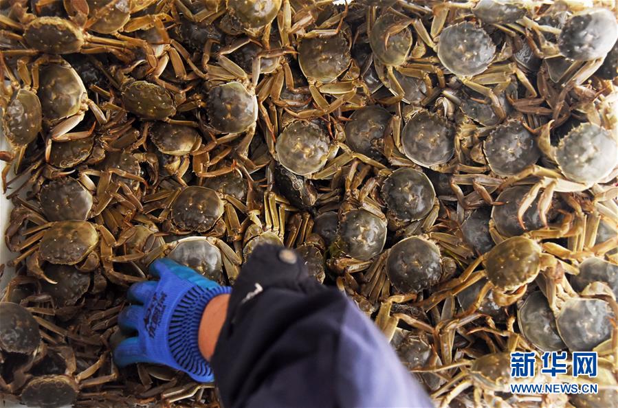 時下正值山東東營黃河口大閘蟹收獲的季節(jié),各養(yǎng)殖區(qū)的工人們正在緊張進(jìn)行大閘蟹的收獲、包裝作業(yè),將產(chǎn)品銷售國內(nèi)外市場。