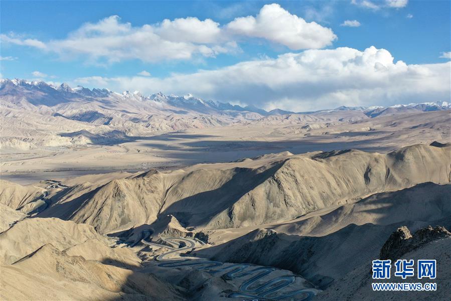 這是10月20日無(wú)人機(jī)拍攝的新疆塔什庫(kù)爾干塔吉克自治縣吾格亞提盤(pán)山公路。在中國(guó)西陲的新疆帕米爾高原,塔什庫(kù)爾干塔吉克自治縣縣城到瓦恰鄉(xiāng)之間有條蜿蜒的盤(pán)山公路,海拔超4200米,全長(zhǎng)36公里,最大落差近1000米,被當(dāng)?shù)厝朔Q(chēng)為“高原天路”。盤(pán)山公路彎曲盤(pán)旋的走勢(shì)與周邊雄渾壯麗的風(fēng)光,共同構(gòu)成一幅壯美畫(huà)卷。這條公路名為吾格亞提盤(pán)山公路,2019年7月投入使用,便利了山區(qū)農(nóng)牧民的出行。新華社記者丁磊攝