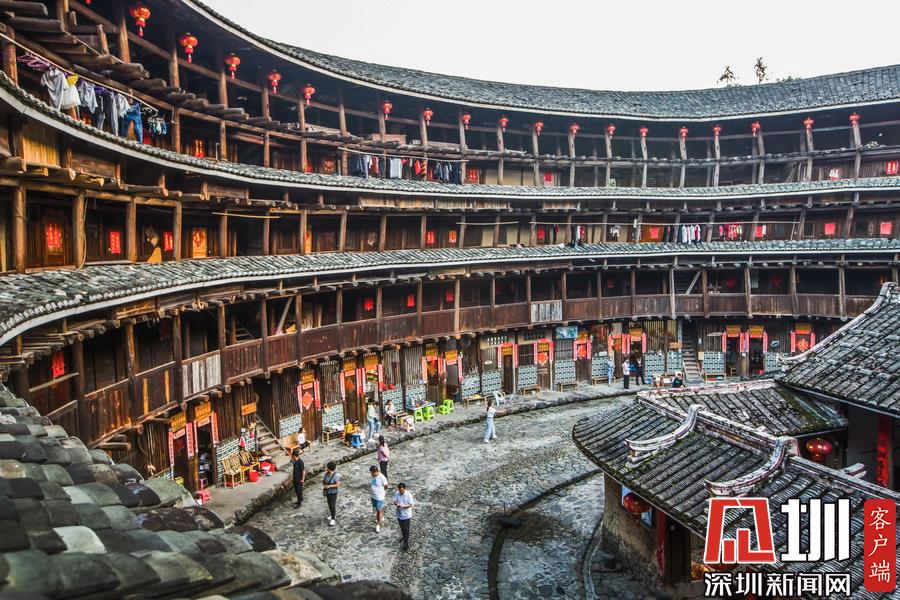 客家圍龍屋里面,現(xiàn)在大部分被開發(fā)成旅游景點,有“土樓之王”稱號的承啟樓,每年就吸引大量的游客參觀。李酮攝