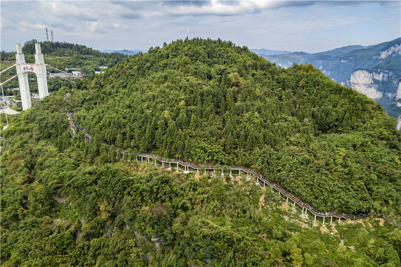 2018年10月4日,游客正在參觀湖南省湘西土家族苗族自治州吉首市矮寨景區(qū)懸崖棧道。劉振軍/視覺中國