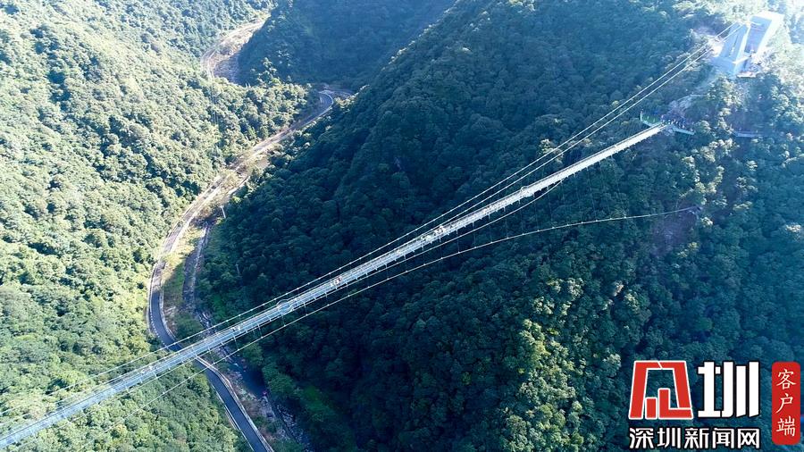 2019年8月24日,說到“玻璃天橋”,恐高的人雙腳發(fā)抖,膽大的人躍躍欲試,在國內(nèi)的湖南張家界、福建三明尤溪、河南嵩山三皇寨等地,已經(jīng)出現(xiàn)了不少與自然景觀、人文歷史融為一體的玻璃天橋,讓游客們大呼過癮?,F(xiàn)在,浙江臺州人可以就近去三門過一把“行走在云端”的癮了。今年夏天,全長419米、垂直高度199米玻璃景觀懸索橋,出現(xiàn)在臺州三門潘家小鎮(zhèn)情人谷,刺激程度絕不亞于張家界玻璃橋。這座橋橫跨牛郎峰、織女峰之間,可將潘家小鎮(zhèn)的美麗風景盡收眼底。圖為航拍玻璃天橋。