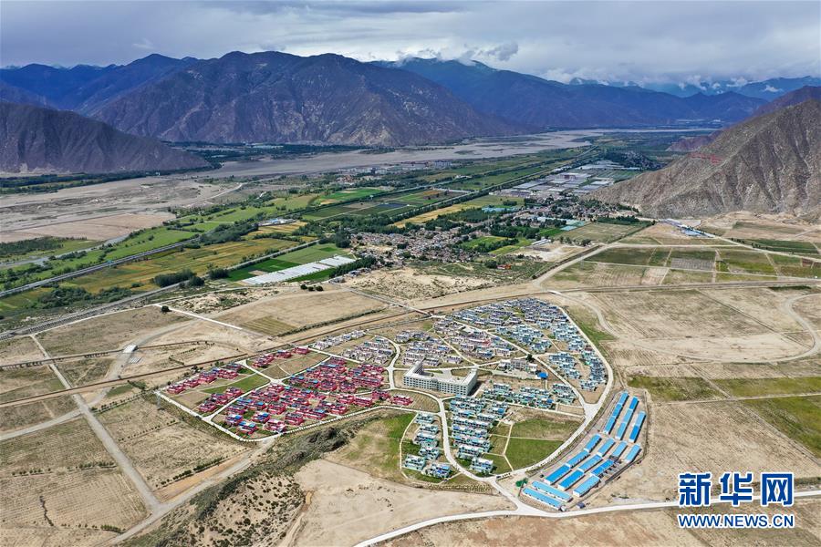鳥瞰曲水縣才納鄉(xiāng)四季吉祥村(8月8日無(wú)人機(jī)拍攝)。新華社記者普布扎西攝