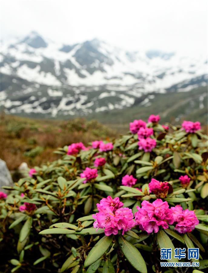 雪山腳下盛開的高山杜鵑(5月31日攝)。