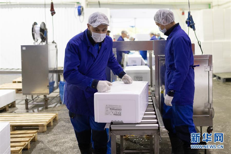 9月13日,在俄羅斯摩爾曼斯克,俄羅斯水產(chǎn)養(yǎng)殖公司工作人員搬運已裝箱的鮭魚。 俄羅斯水產(chǎn)養(yǎng)殖公司是俄羅斯大西洋鮭和虹鱒的主要生產(chǎn)商之一。目前,該公司產(chǎn)品在俄市場上占比近20%,在摩爾曼斯克和卡累利阿共和國均有養(yǎng)殖場。俄羅斯水產(chǎn)養(yǎng)殖公司總經(jīng)理伊利亞·索斯諾夫認為,中國鮭魚消費市場潛力巨大?!爸袊袌鰧τ谖覀儊碚f非常重要,我們期待早日進入中國市場……希望我們的鮭魚能贏得中國消費者的喜愛?!?新華社記者白雪騏攝