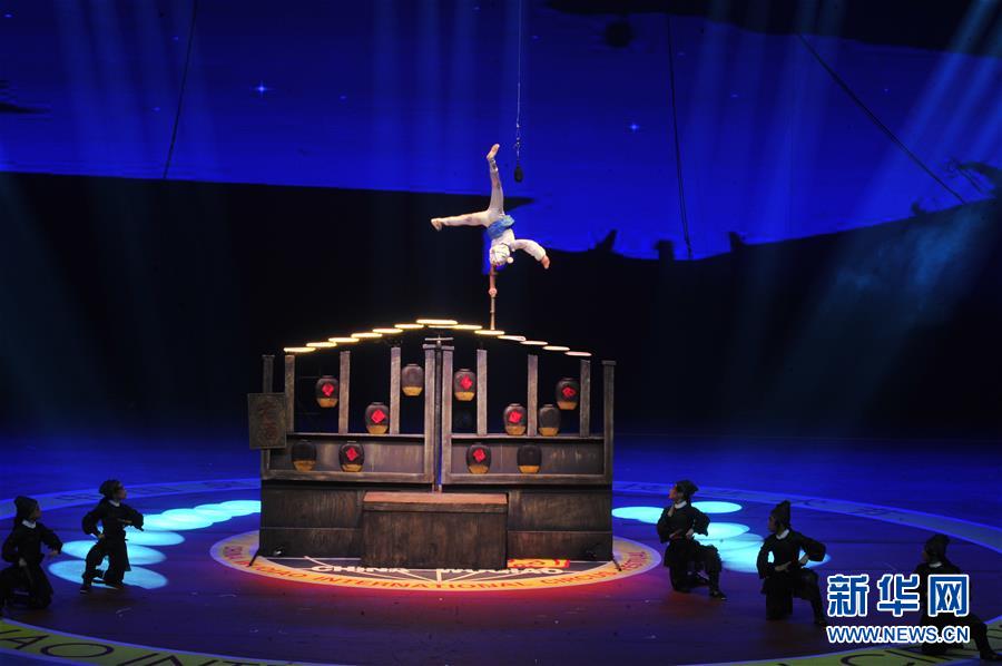 11月3日,來(lái)自埃塞俄比亞的演員在表演《蹬技》。 當(dāng)日,第十七屆中國(guó)吳橋國(guó)際雜技藝術(shù)節(jié)滄州會(huì)場(chǎng)世界雜技精品惠民展演在河北省滄州市體育館舉行。中國(guó)吳橋國(guó)際雜技藝術(shù)節(jié)創(chuàng)辦于1987年,每?jī)赡昱e辦一屆,是我國(guó)雜技藝術(shù)領(lǐng)域舉辦歷史最長(zhǎng)、規(guī)模最大、影響最廣的國(guó)家級(jí)藝術(shù)賽事和文化節(jié)慶活動(dòng)。 新華社記者 牟宇 攝