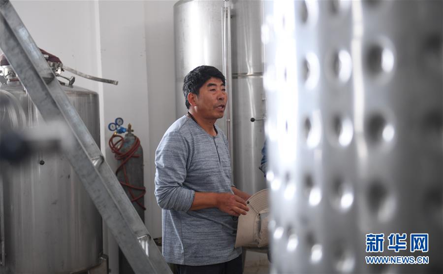 建廠生產(chǎn)并注冊“丁德良”牌干紅葡萄酒品牌的魯仁弟在他的酒廠里(6月3日攝)。新華社記者晉美多吉攝