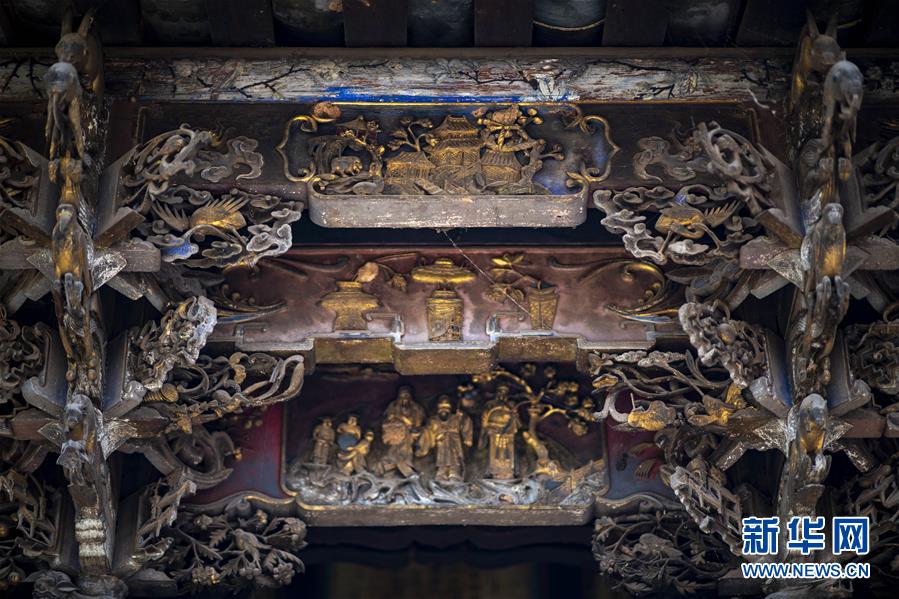 位于石屏縣異龍鎮(zhèn)符家營(yíng)村一戶老屋中“修舊如舊”的房梁(8月8日攝)。新華社記者江文耀攝