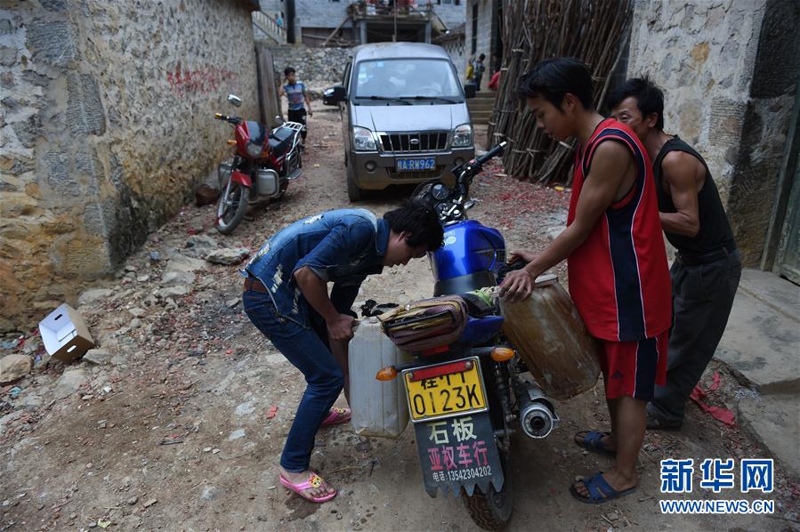 在廣西大化瑤族自治縣板升鄉(xiāng)弄勇村弄朝屯,村民到鄰村運水飲用(2015年2月28日攝)。如今,弄朝屯幾乎家家戶戶都修建了家庭水柜。新華社記者黃孝邦攝