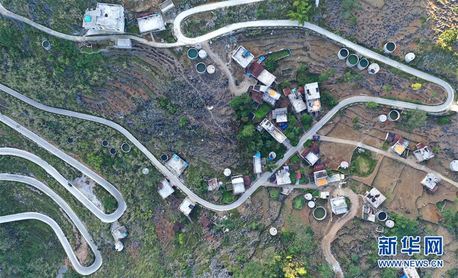 廣西大化瑤族自治縣七百弄鄉(xiāng)弄騰村群眾的家庭水柜分布在房前屋后(11月9日無人機拍攝)。新華社記者黃孝邦攝