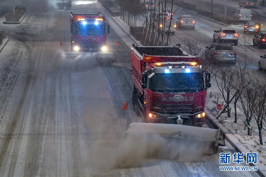 11月17日,一輛環(huán)衛(wèi)清雪車(chē)在作業(yè)。 新華社記者 顏麟蘊(yùn) 攝