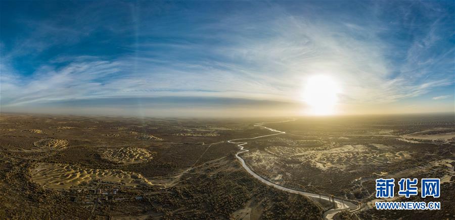 這是在塔克拉瑪干沙漠腹地拍攝的克里雅河(11月18日無人機(jī)全景拍攝)。