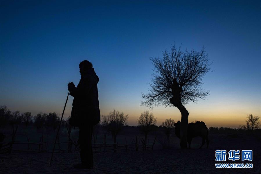 牧民買買提行走在克里雅河畔的胡楊林間(11月14日攝)。 新華社記者 胡虎虎 攝