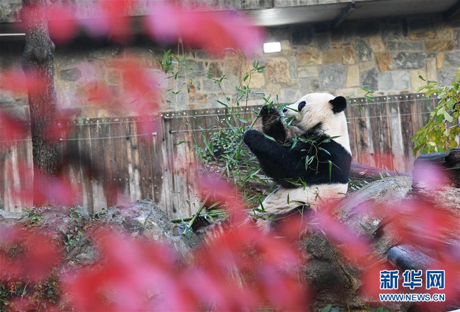 11月19日,在美國華盛頓的美國國家動物園,大熊貓“貝貝”享用啟程回國前的最后一頓“早餐”。 新華社記者 劉杰 攝