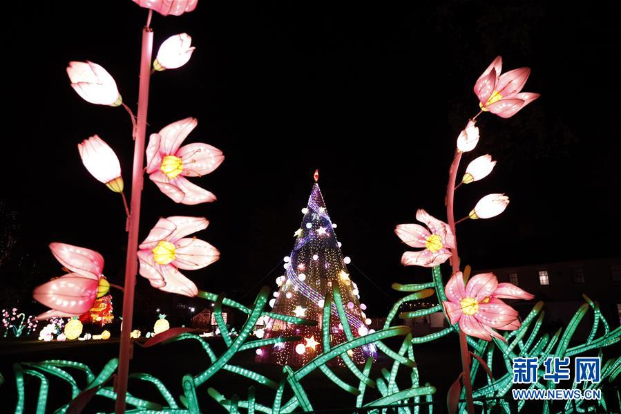 這是11月20日在美國(guó)紐約斯塔滕島第二屆紐約花燈游園會(huì)上拍攝的花燈。當(dāng)日,第二屆紐約花燈游園會(huì)在美國(guó)紐約斯塔滕島開幕,50余組各類花燈照亮夜空,吸引觀眾前來賞燈游玩。新華社記者李木子攝