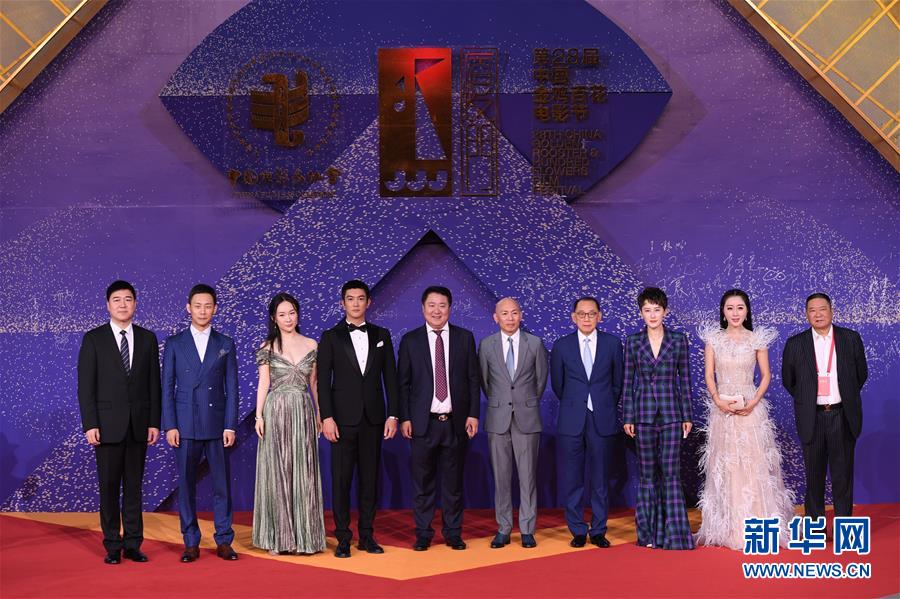 11月23日,田華(右一)、盧燕(左二)等在紅毯儀式上。當(dāng)日,第28屆中國金雞百花電影節(jié)紅毯儀式在福建廈門舉行。新華社記者張國俊攝