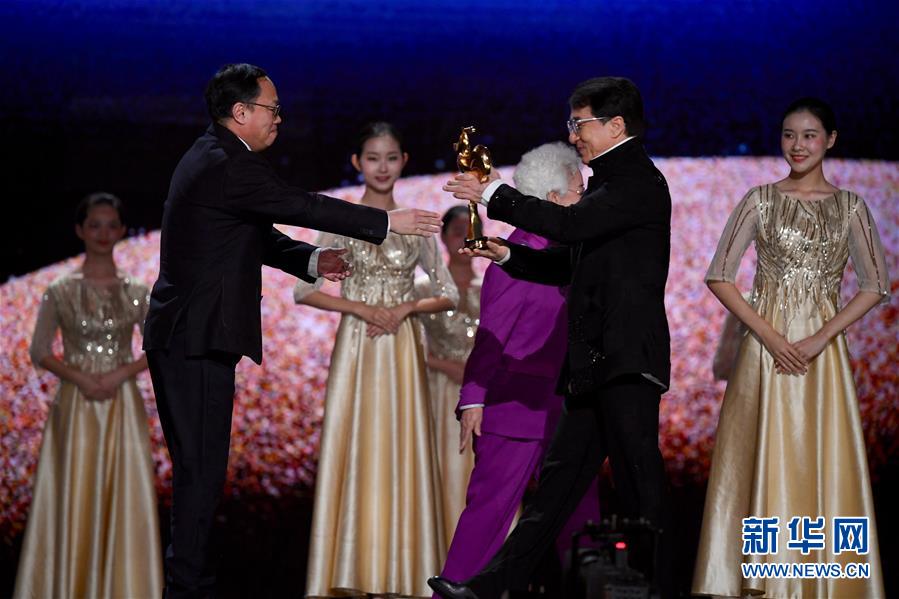 11月23日,電影《流浪地球》獲得最佳故事片獎,成龍在為電影出品方代表頒獎。當(dāng)日,第32屆中國電影金雞獎頒獎典禮在福建廈門舉行。新華社記者姜克紅攝