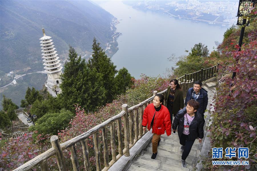 11月23日,游客在位于長(zhǎng)江巫峽段的巫山文峰景區(qū)游覽。初冬時(shí)節(jié),位于重慶巫山縣境內(nèi)的長(zhǎng)江巫峽段呈現(xiàn)出一江碧水東流、兩岸層林盡染的秀美景象。新華社記者王全超攝